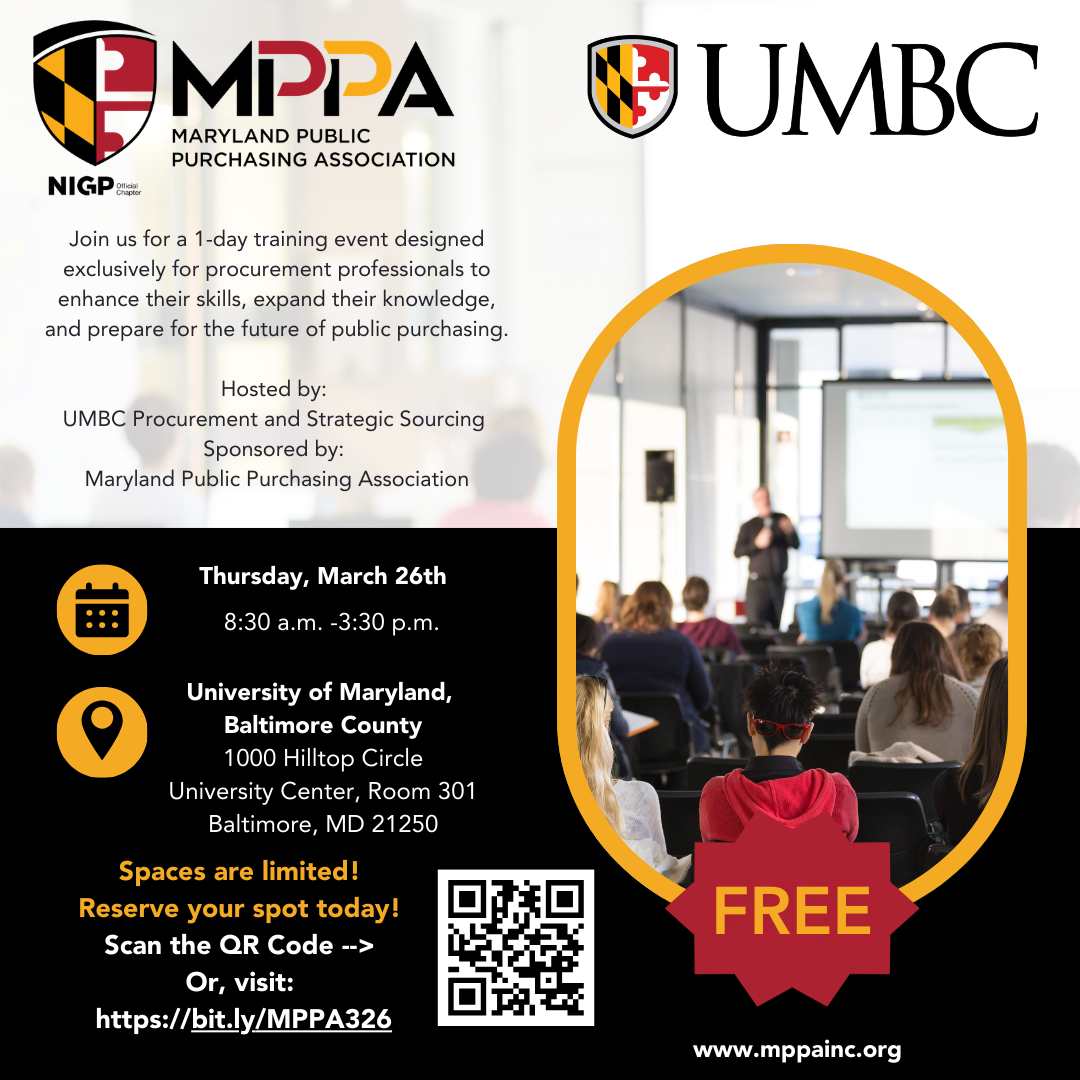 The Maryland Public Purchasing Association, Inc. (MPPA) is a professional organization comprised of over 300 procurement professionals throughout the State. MPPA, Inc. members represent various public purchasing entities including the federal government, state, cities, counties, colleges and universities, libraries, hospitals, commissions and other public agencies. MPPA, Inc. is the local chapter of the National Institute of Governmental Purchasing (NIGP), which has over 70 chapters in the United States, Canada, and internationally.